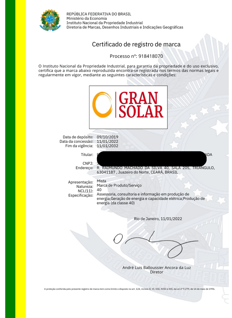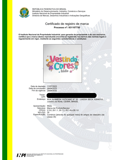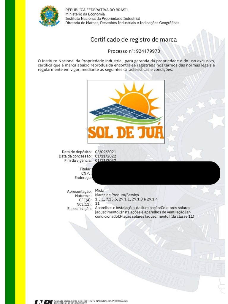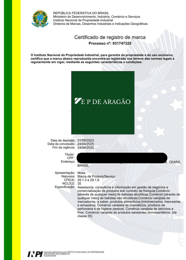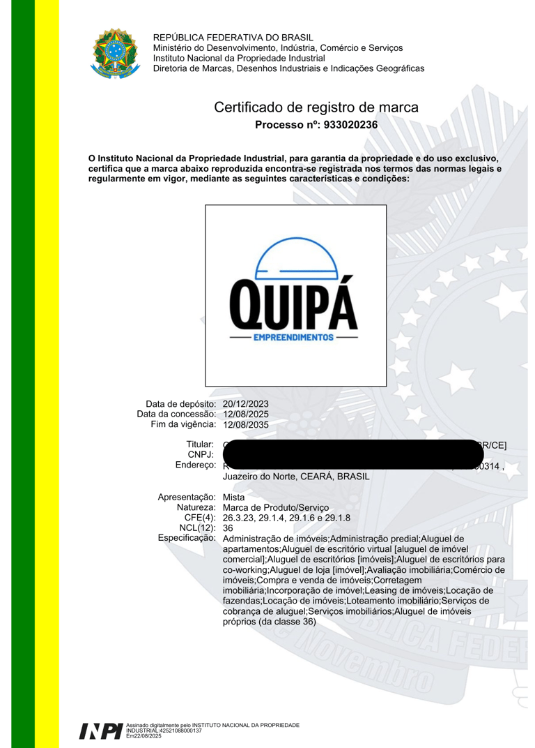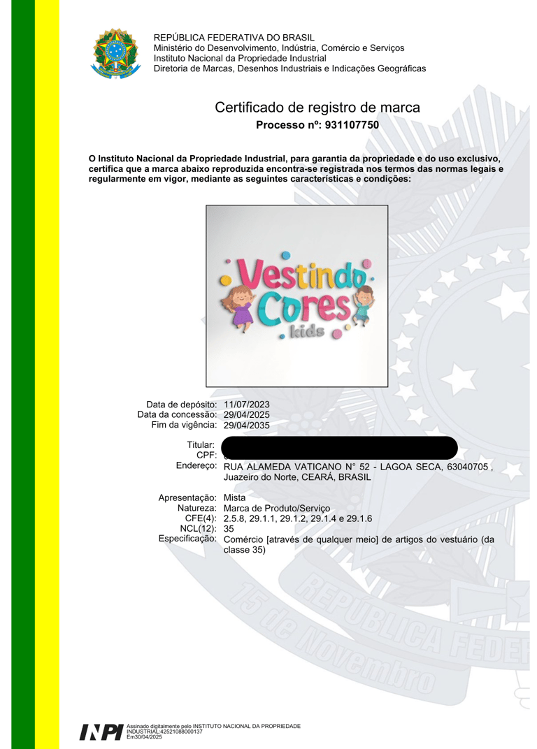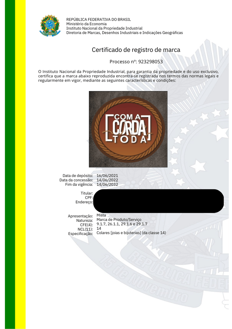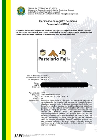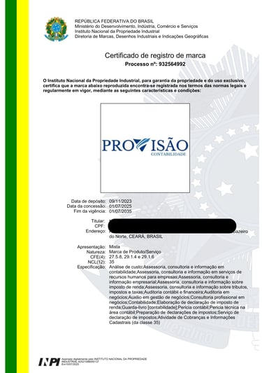 Emissão do Certificado de Registro