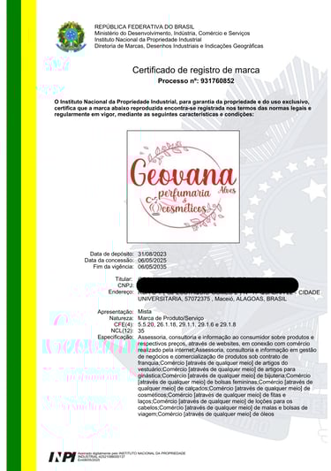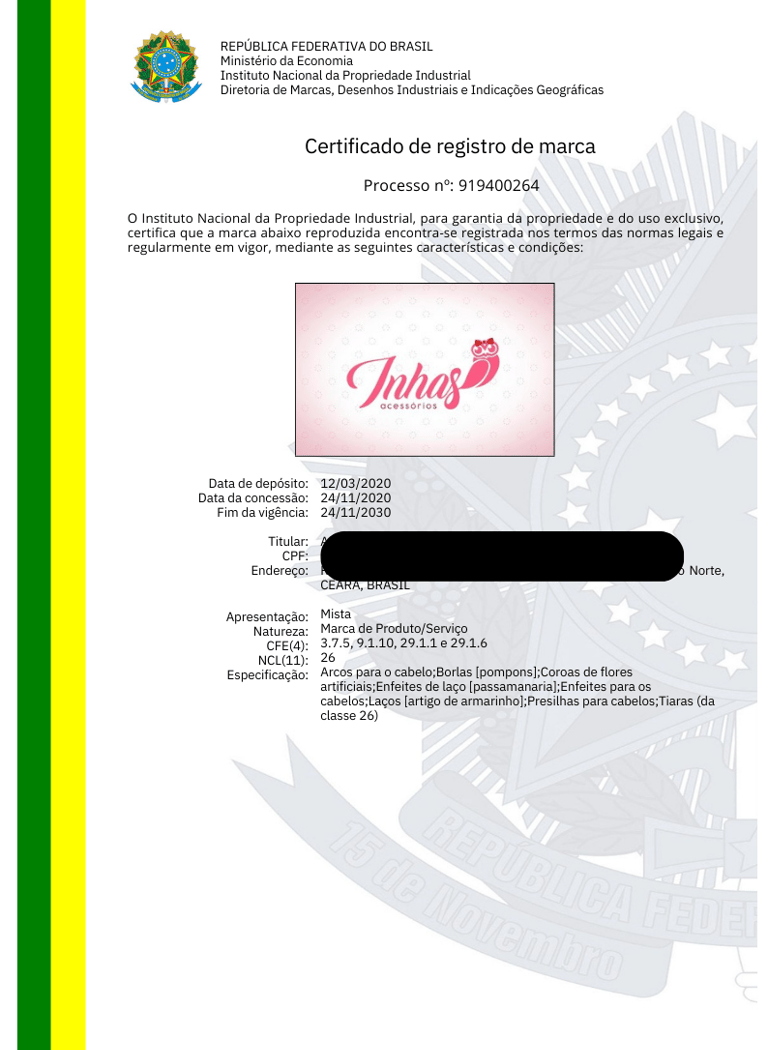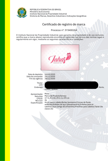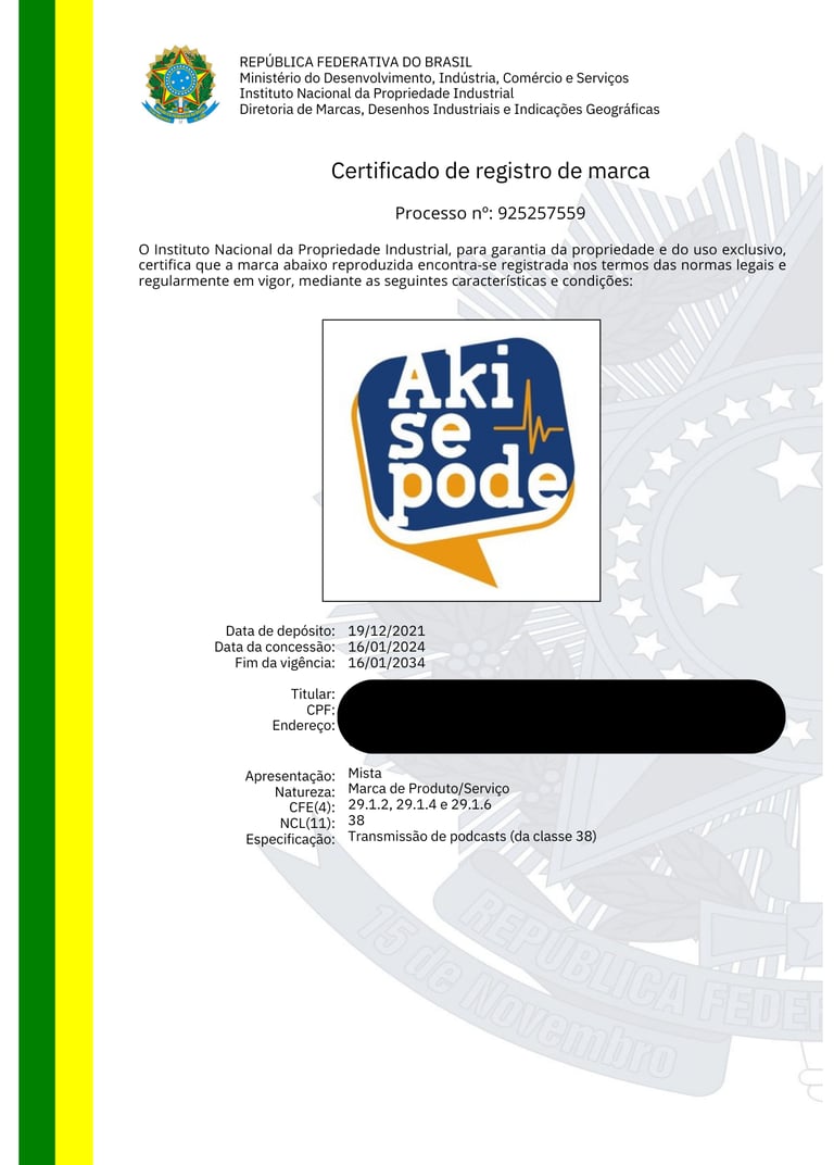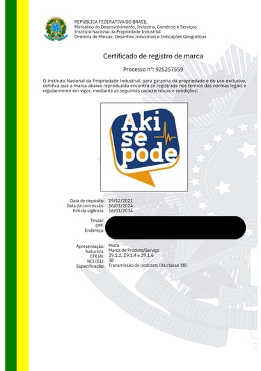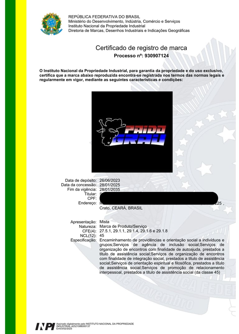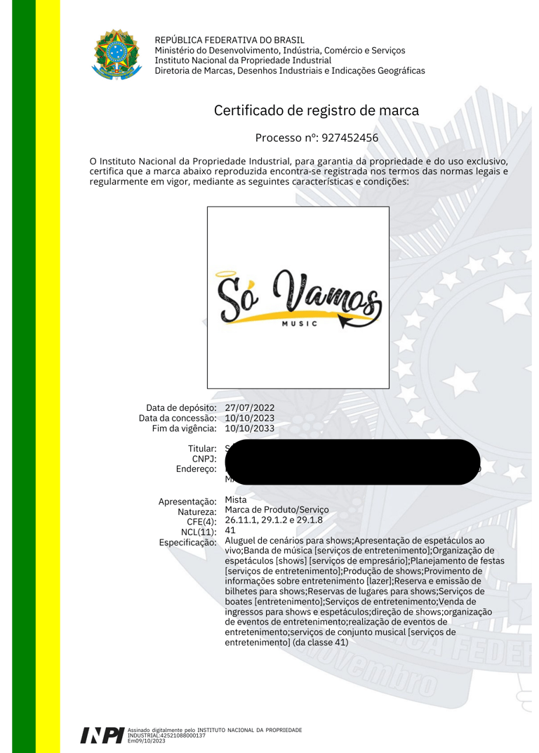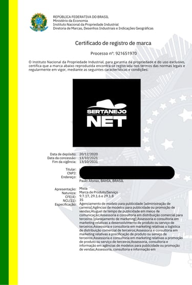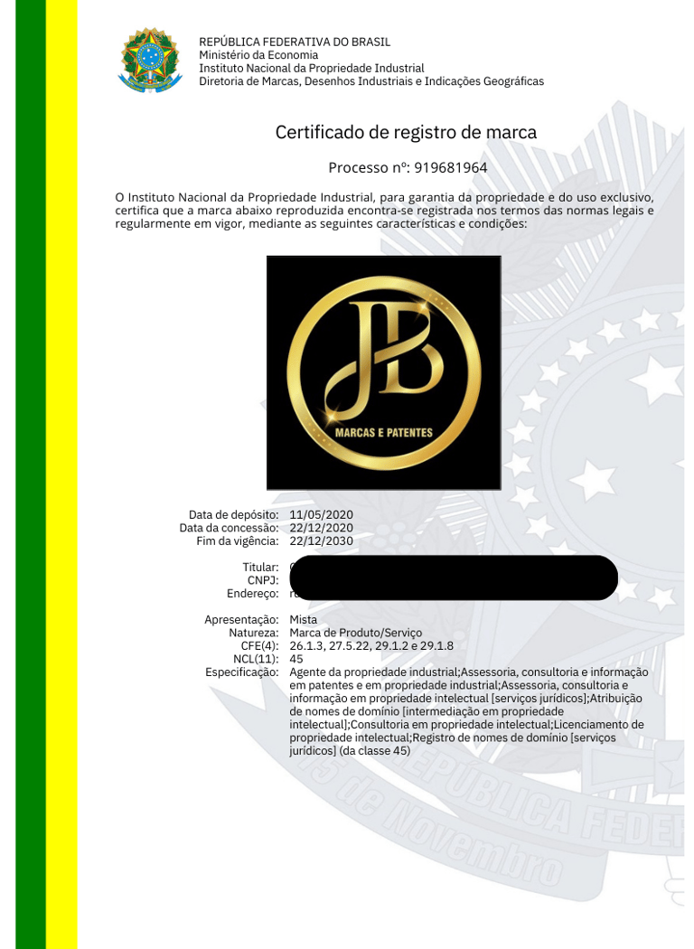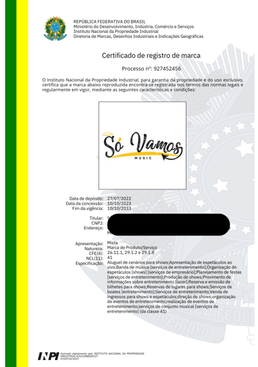 REGISTRO DE MARCAS / NOME ARTÍSTICO / BANDA MUSICAL / DESENHO INDUSTRIAL / OBRA AUTORAL / SOFTWARE / DOMÍNIO