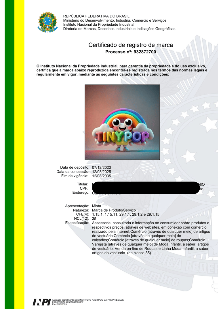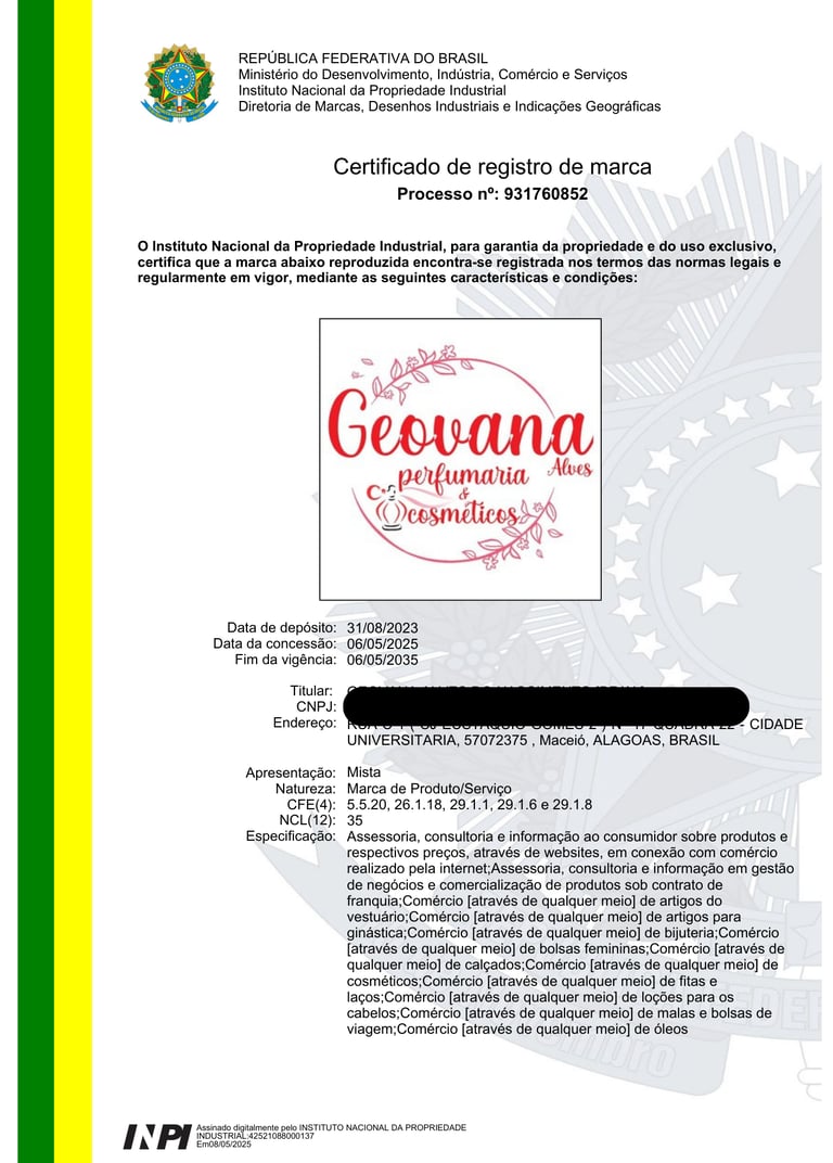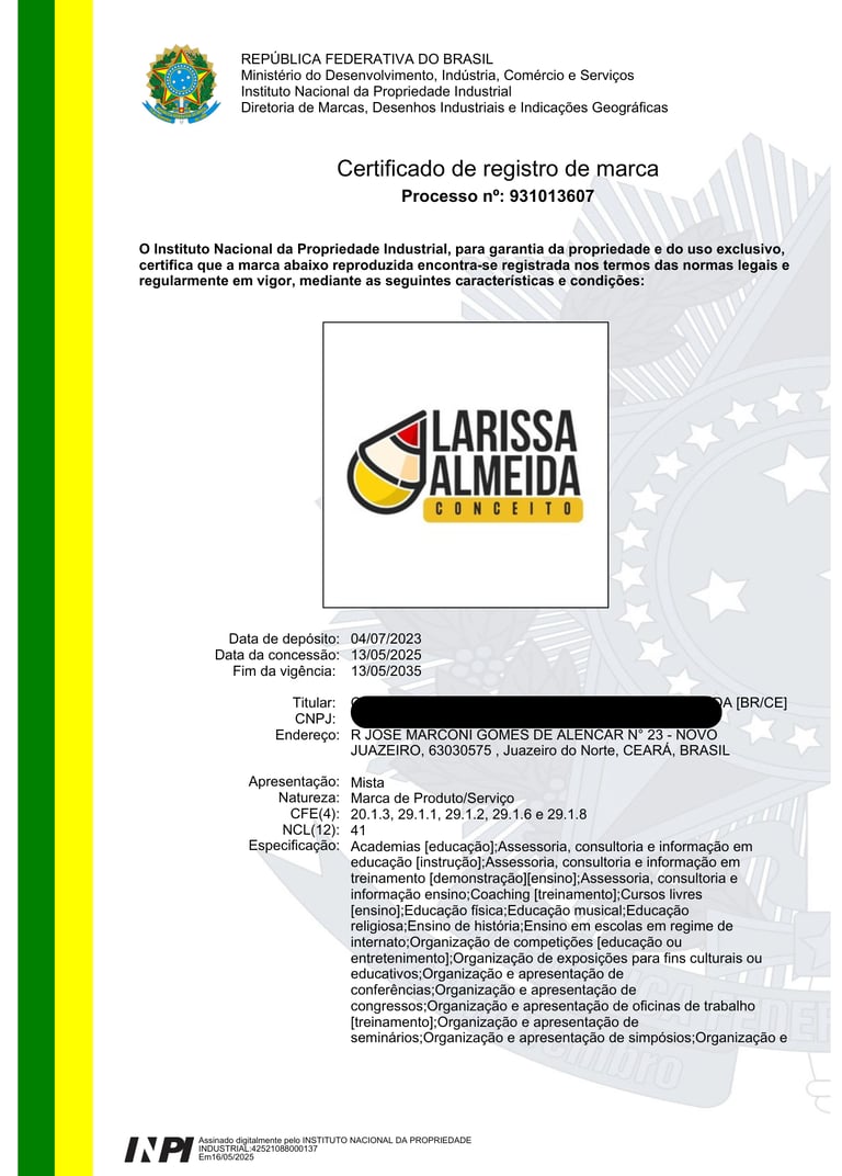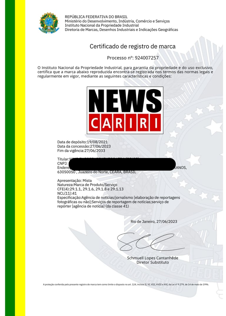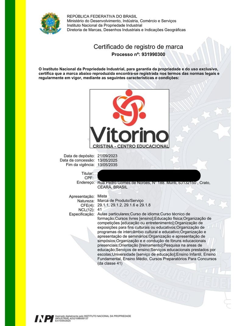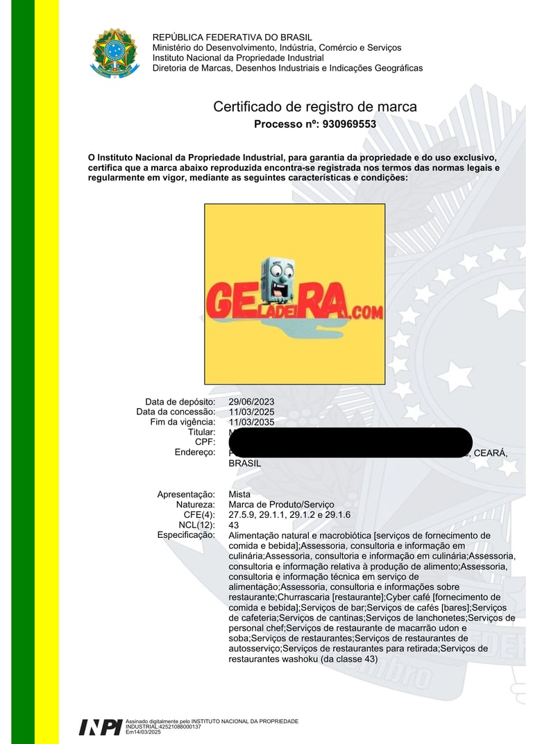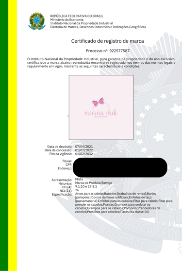 REGISTRO DE MARCAS / NOME ARTÍSTICO / BANDA MUSICAL / DESENHO INDUSTRIAL / OBRA AUTORAL / SOFTWARE / DOMÍNIO