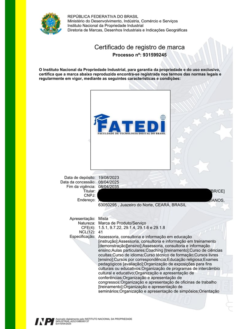 Cumprimento de Exigencias do INPI
